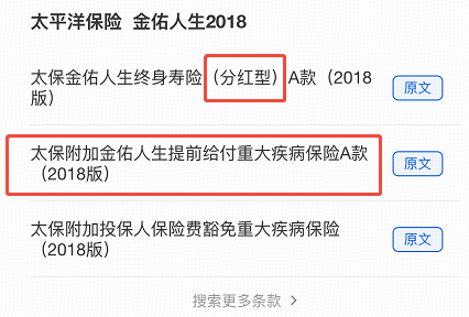 后面大家还能看到一些“分红型重疾险”,实际主险是「分红型终身寿险」,附加了一个普通型重疾险,重疾险本身并不具备分红功能。
