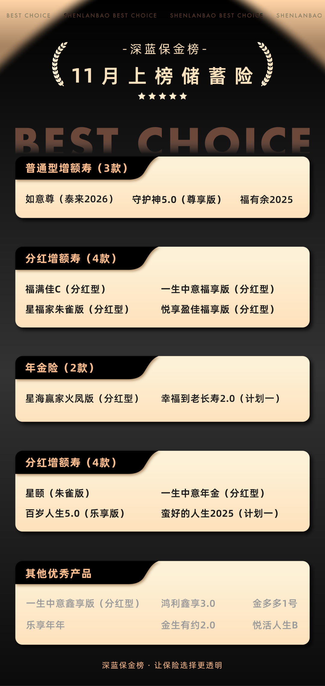 每个月我们都会出一期优秀储蓄险榜单,让大家能快速找到好产品。