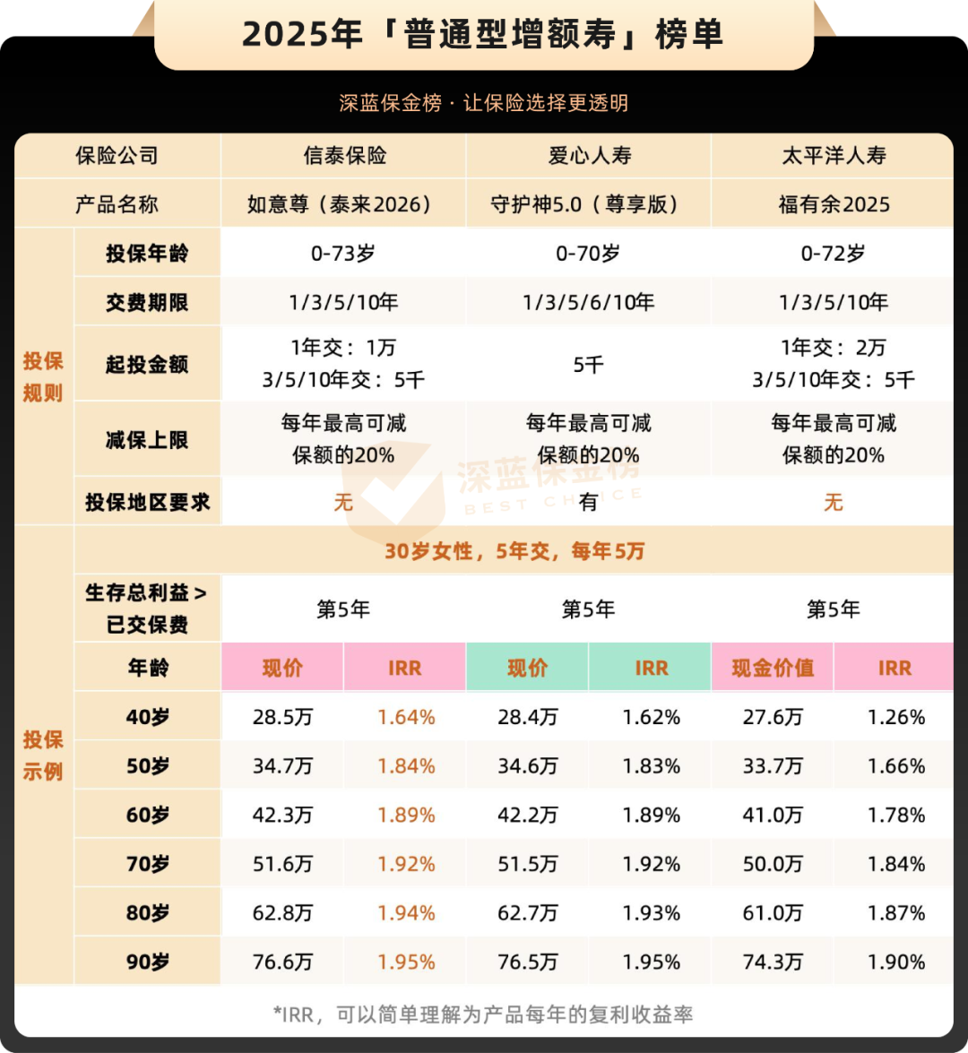 表中还有一款爱心人寿的守护神5.0(尊享版),收益跟它很接近,可以作为备选。