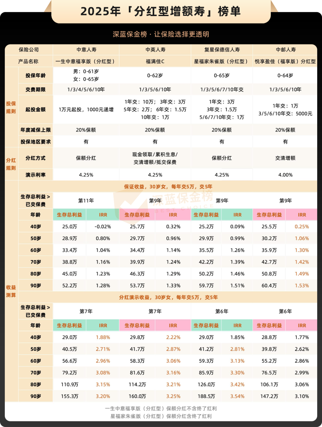 另外新华人寿有一款E增福优享版,收益率跟『福有余2025』差不多,前中期的增值速度更快一些。