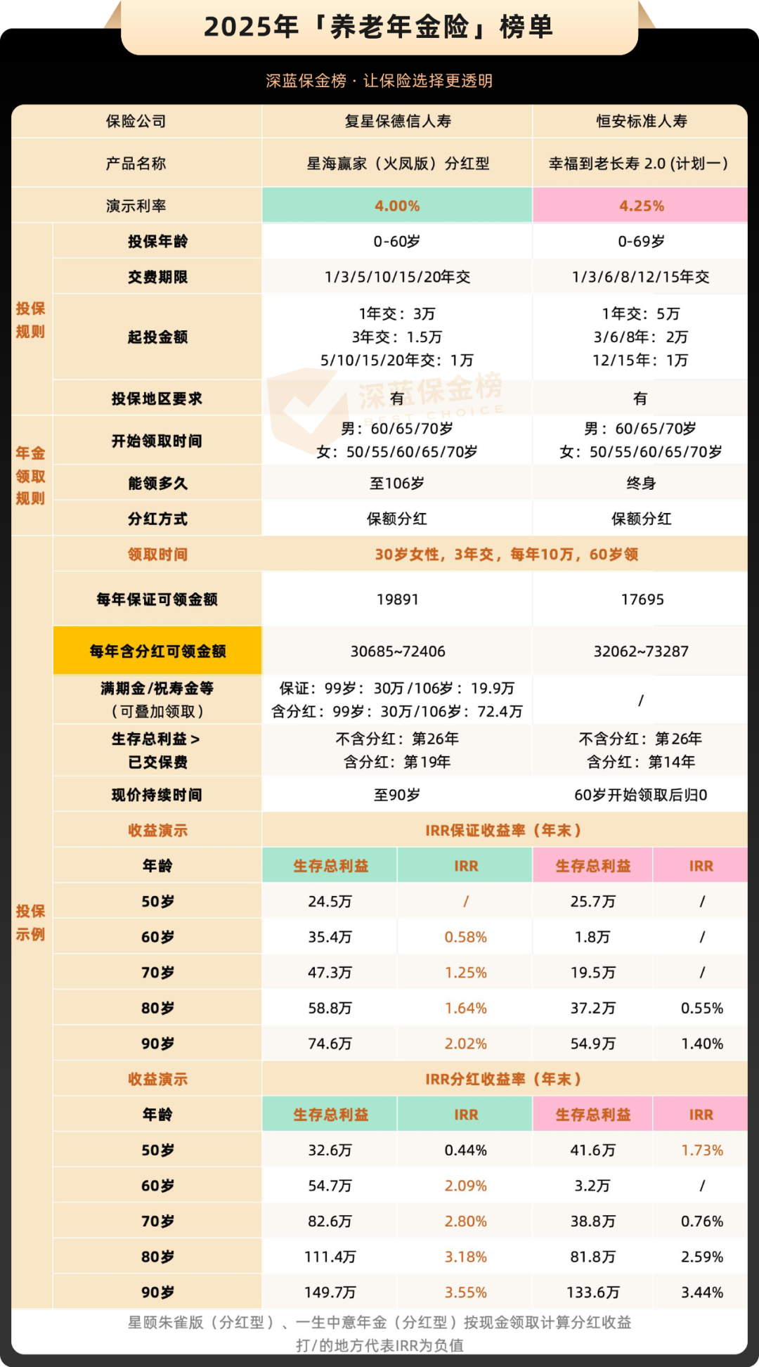 如果非常看重确定性收益,则可以考虑固收的蛮好的人生2025和百岁人生5.0,每年能稳定领个6000左右。