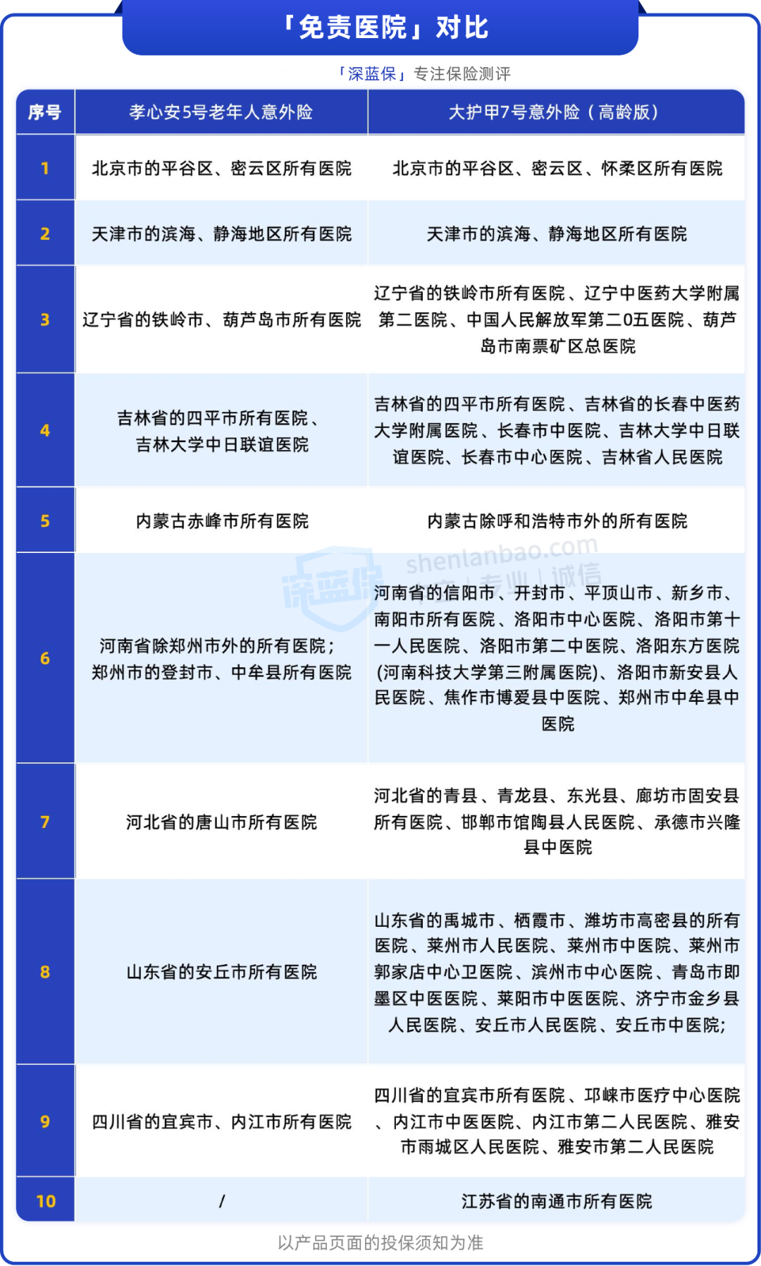相对来说,大护甲7号(高龄版)的免责医院限制更加严格。