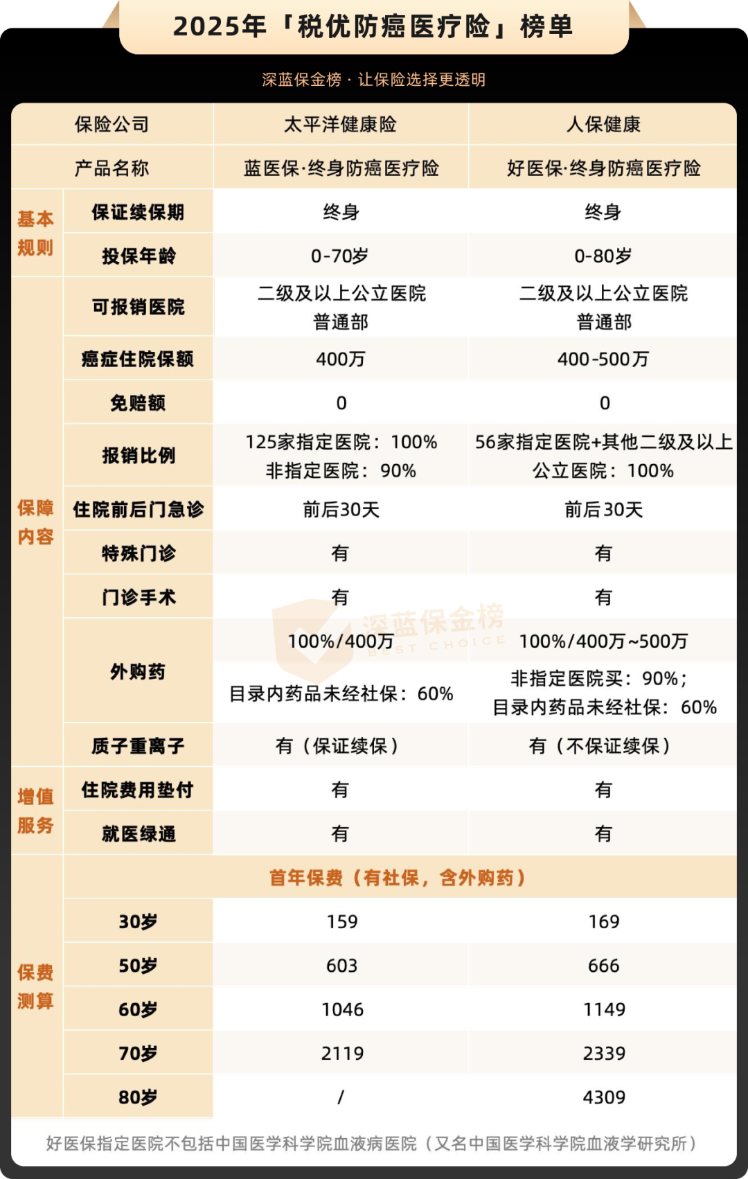 要是居住地附近的医院不在指定范围内,也可以再看看「好医保·终身防癌医疗险」,指定医院范围更广,健康和年龄要求也更宽松。
