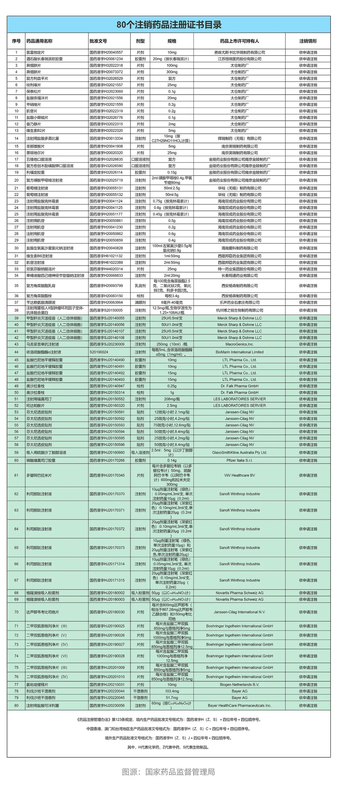 但首先:80个注销药品里,只有42个是进口药,其余都是国产药。