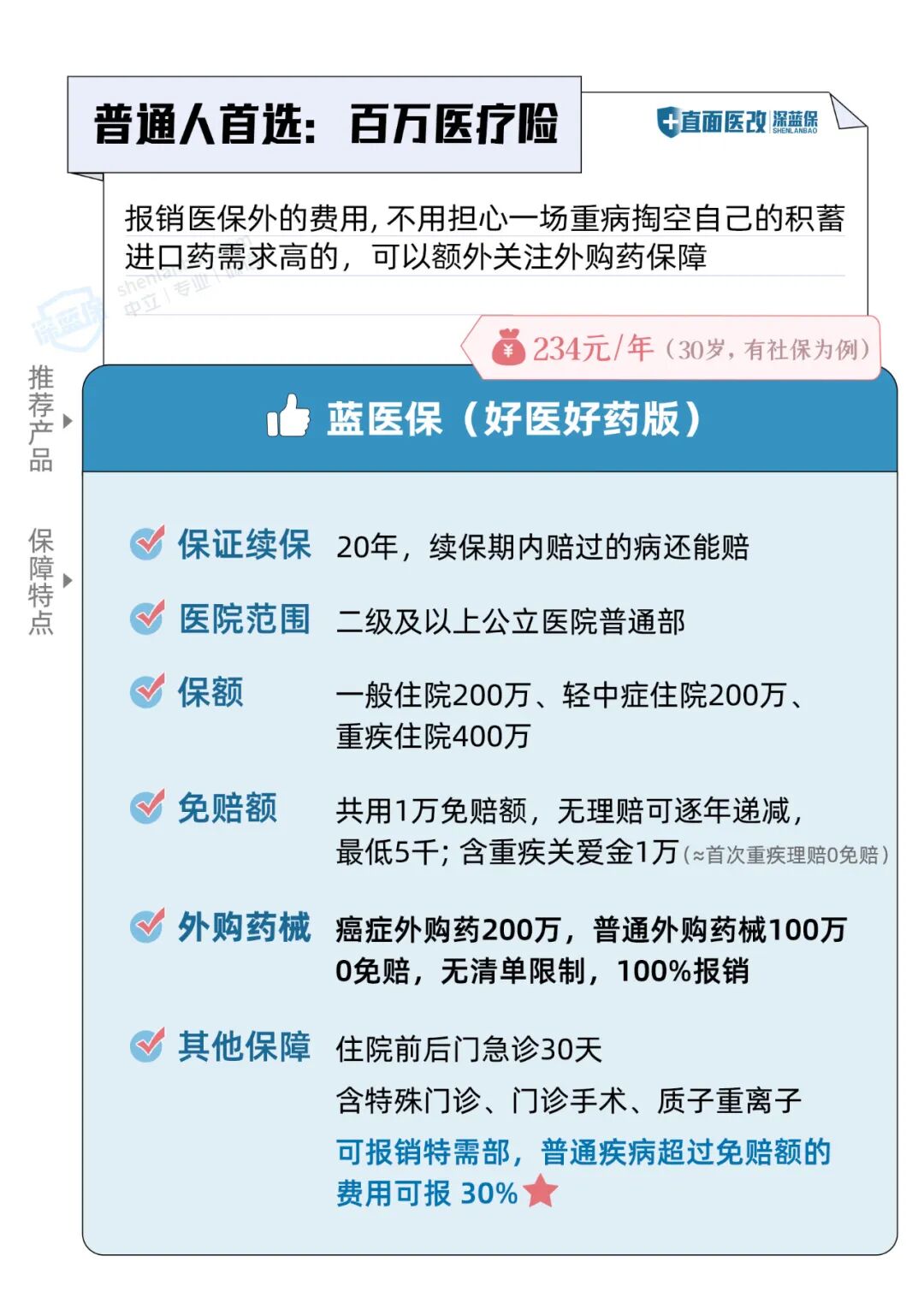 配置商业保险的好处就是“低成本高杠杆”,一年几百块,就能保几十万的进口药、自费药,不用自己硬扛。