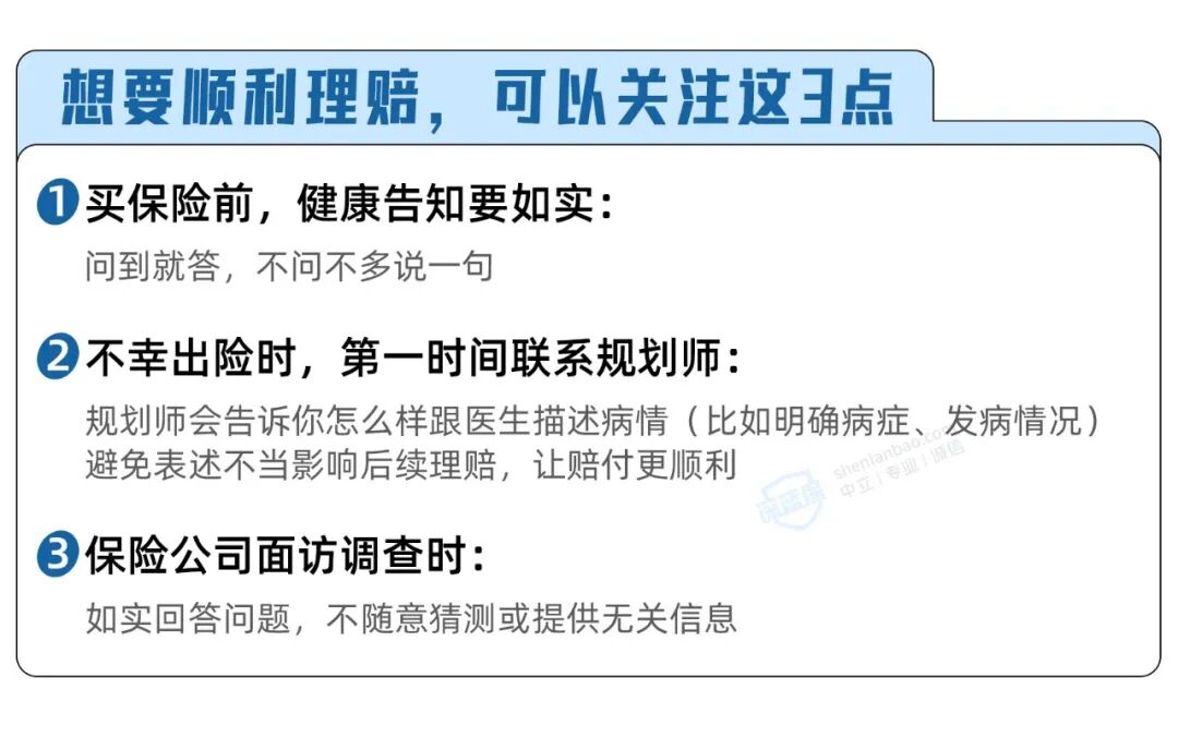 如果大家想要保险顺利理赔,可以注意这3个要点: