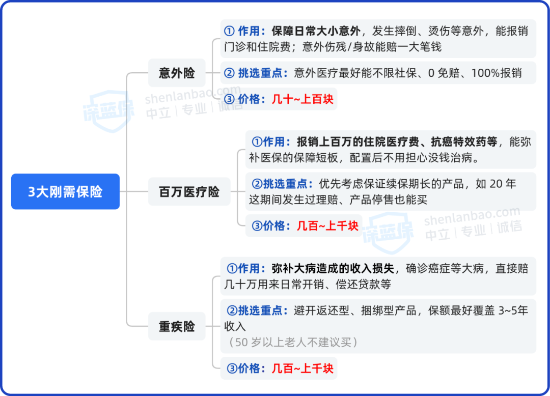 如果预算有限,建议优先考虑以下3种保险: