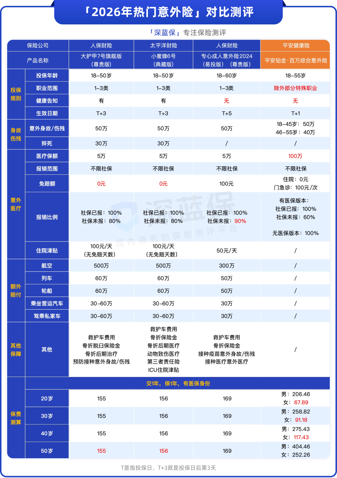 我们拿市面上热销的几款意外险产品,和平安这款产品进行对比,看看到底如何选: