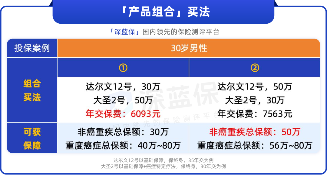 如果是还没买过重疾险的朋友,也可以参考下面【常规重疾险+大圣2号】的组合买法: