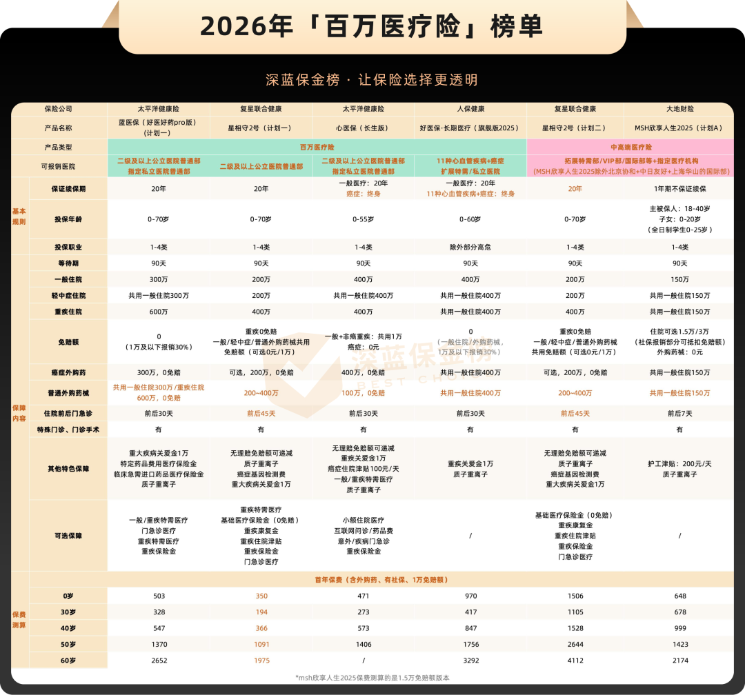 表里还有一款大地财险的MSH欣享人生2025中高端医疗险,这个系列比较经典,估计很多朋友都有听过。