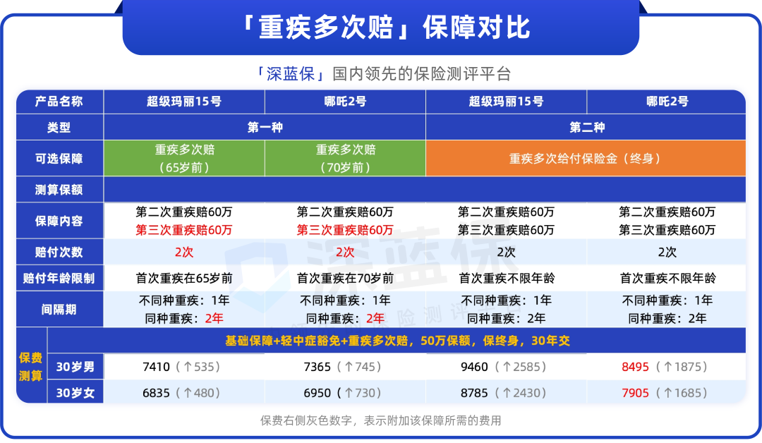 如果想选第一种,哪吒2号首次得重疾的时间更宽松,性价比还高,30岁男性,一年只用多交几百块。