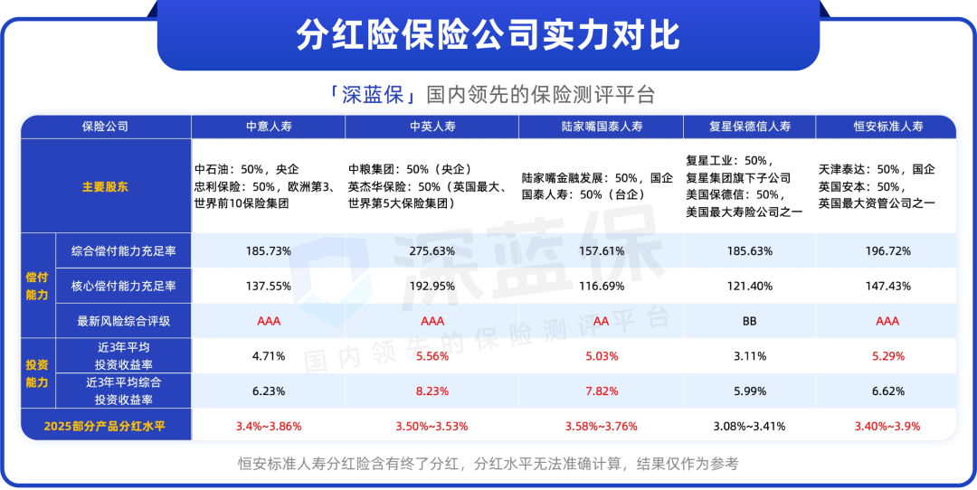 分红水平,用来衡量分红险的实际收益高低。2025年这些公司很多产品都超过了3.4%,最高能达到3.9%,突破了监管3.2%的限高,同样是行业领先水平。