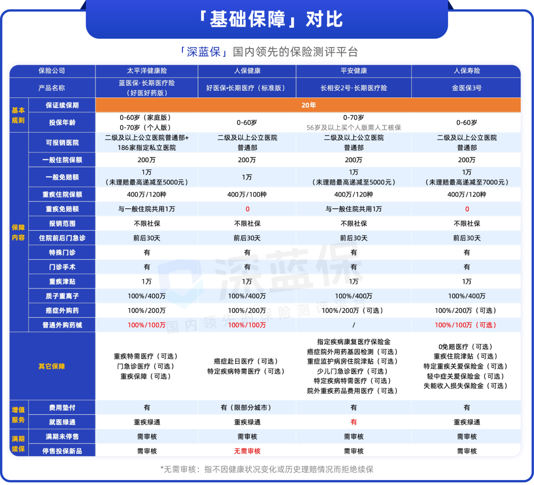 这些产品的基础保障都相当齐全,起码保证续保20年,抗癌外购药等都有覆盖到。