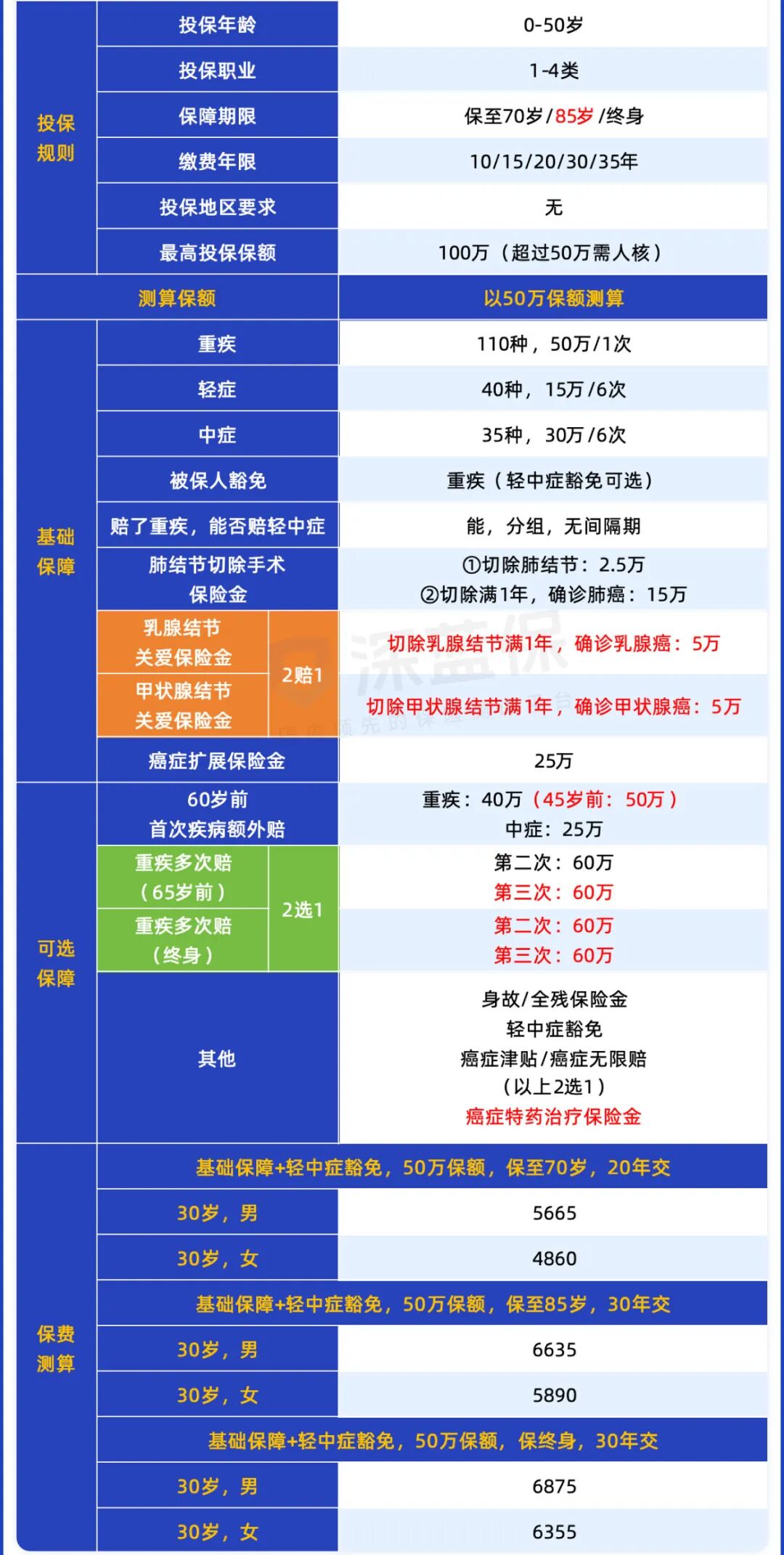 下面以50万保额为例,我们一起看看它都有哪些亮点: