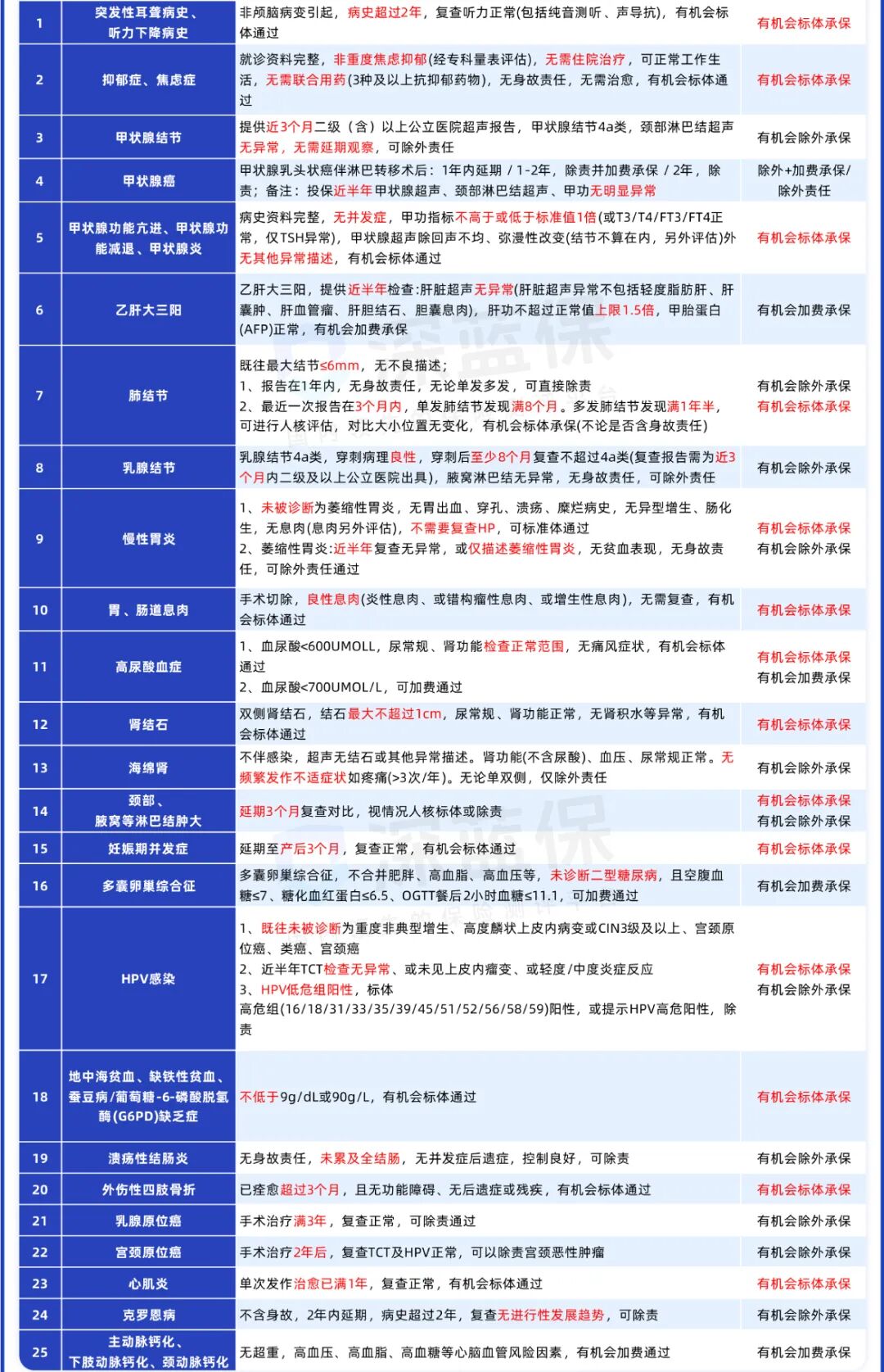 每种疾病的情况不同,这里就不一一举例了,有需要协助核保的朋友,可以点击这里免费咨询。